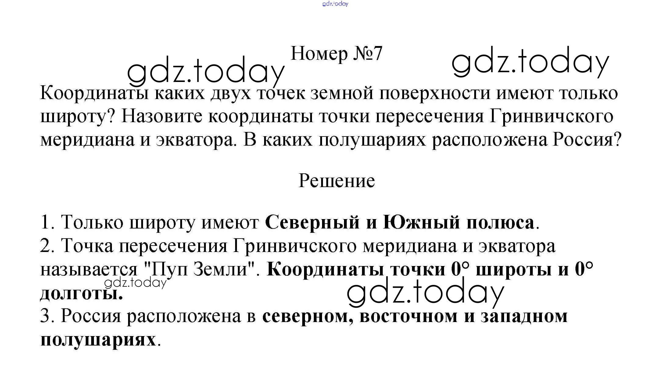 На страницах сайта gdz.today вы найдете учебный и вспомогательный материал, направленный на улучшения знаний школьной программы. ГДЗ - онлайн мир знаний Вопросы и задания Решение к §16. Географические координаты 7 Учебнику по Географии для 5 класса Летягин Просвещение 2021