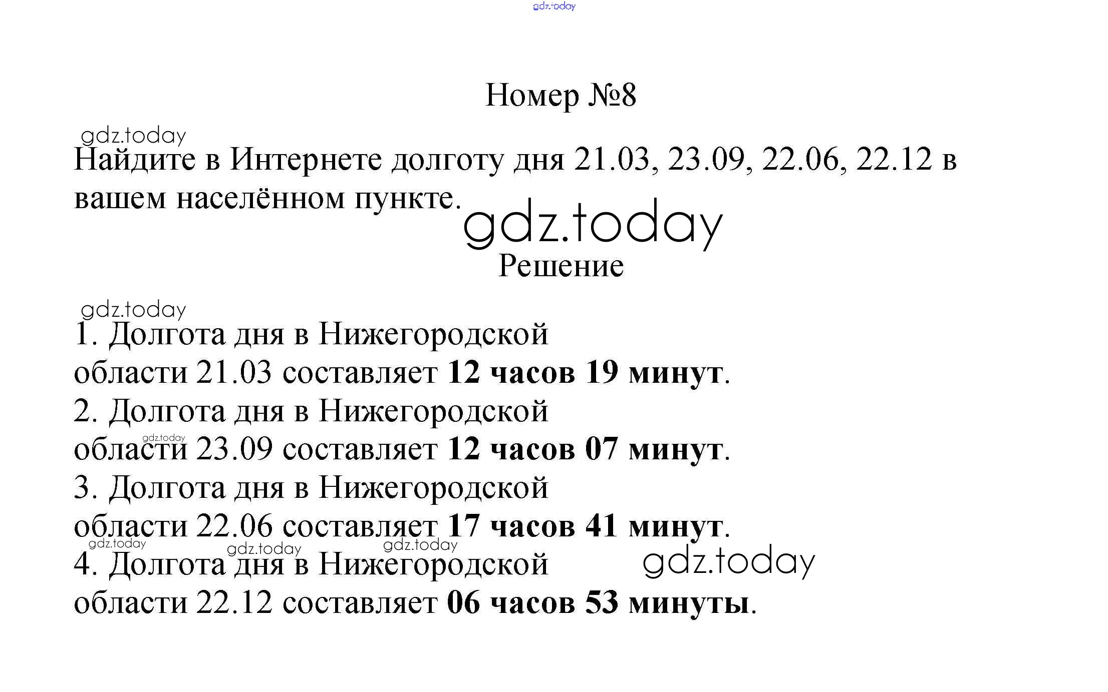 Ответы к Вопросы и задания Решение к §22. Пояса освещённости. Суточное вращение Земли 8 Учебнику по Географии для 5 класса Летягин Просвещение 2021