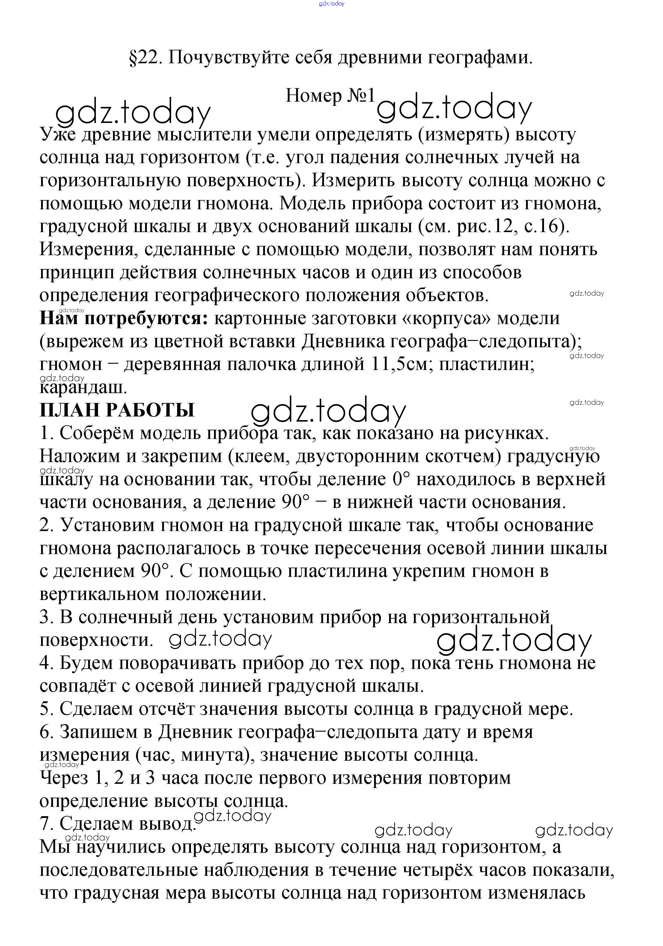 На страницах сайта gdz.today вы найдете учебный и вспомогательный материал, направленный на улучшения знаний школьной программы. ГДЗ - онлайн мир знаний Почувствуйте себя древними географами Решение к §22. Пояса освещённости. Суточное вращение Земли 1 Учебнику по Географии для 5 класса Летягин Просвещение 2021