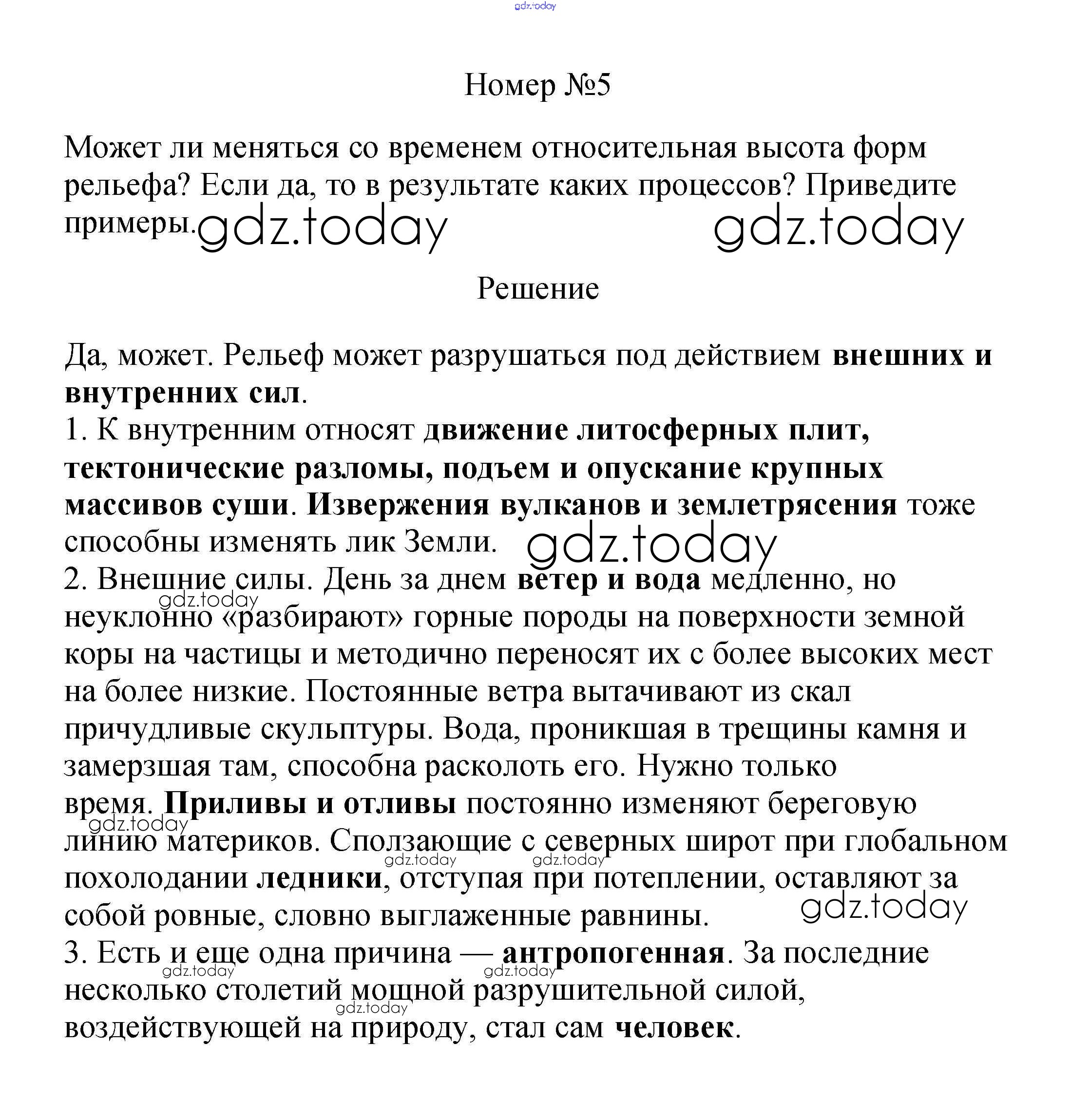 Ответы к Вопросы и задания Решение к §26. Рельеф земной поверхности 5 Учебнику по Географии для 5 класса Летягин Просвещение 2021