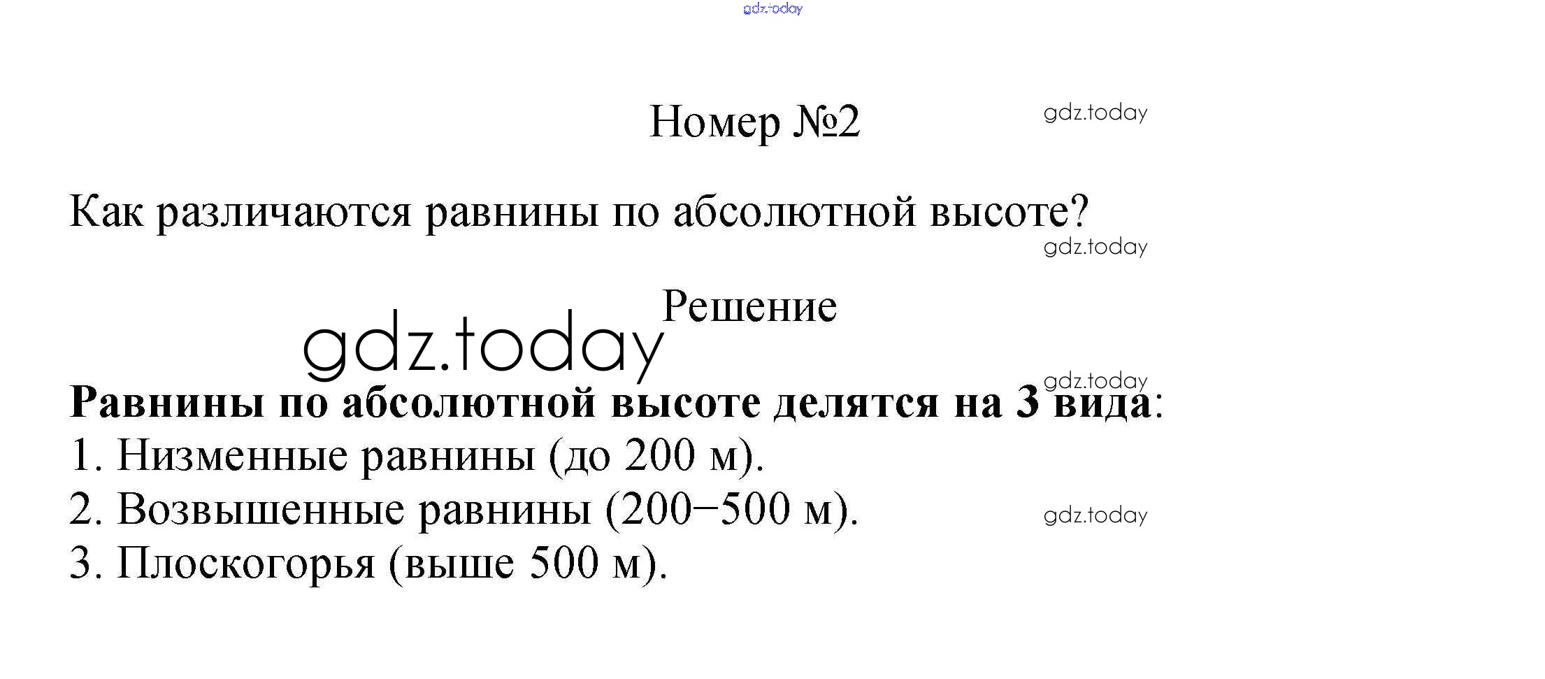 На страницах сайта gdz.today вы найдете учебный и вспомогательный материал, направленный на улучшения знаний школьной программы. ГДЗ - онлайн мир знаний Вопросы и задания Решение к §29. Равнины и плоскогорья суши 2 Учебнику по Географии для 5 класса Летягин Просвещение 2021