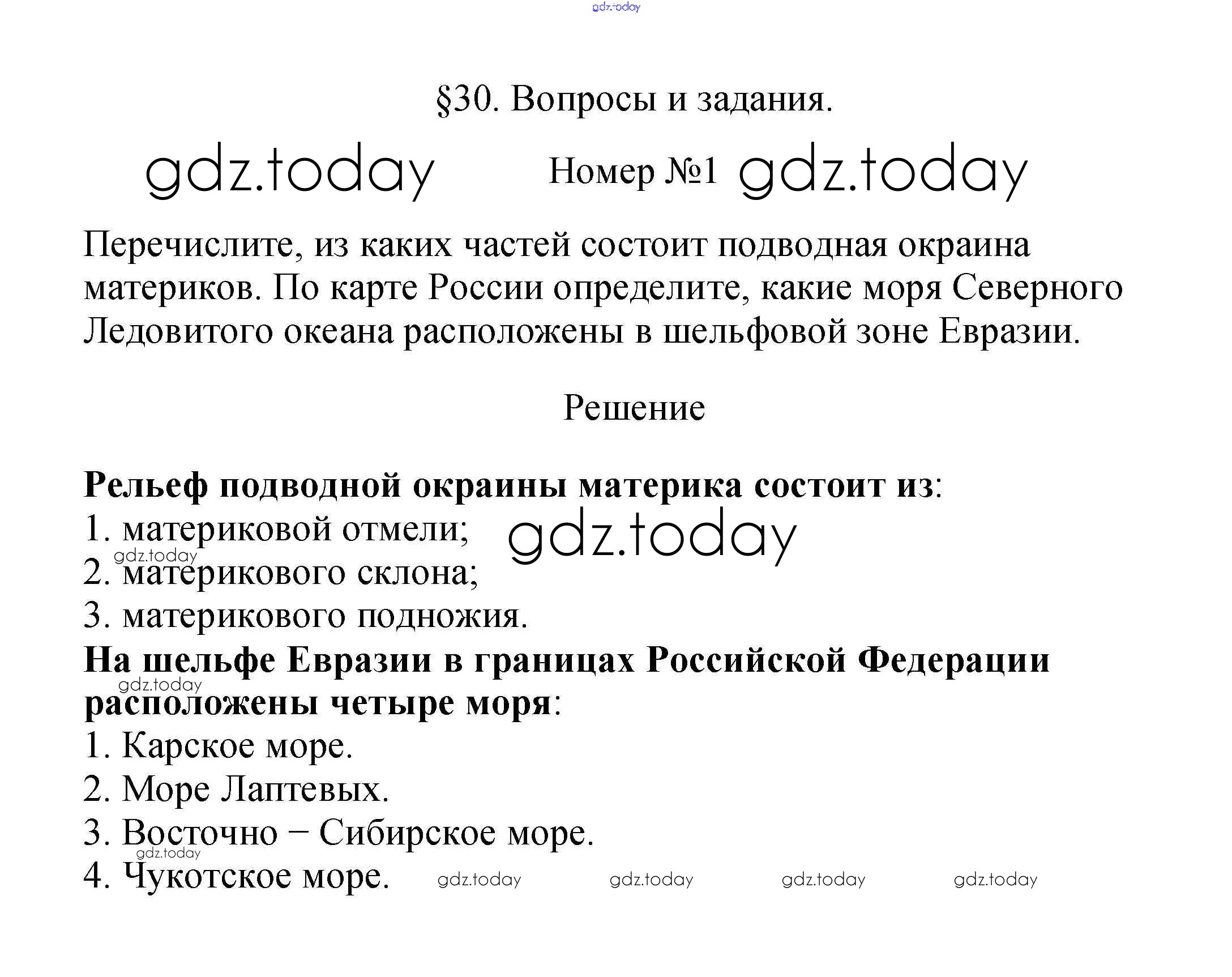 На страницах сайта gdz.today вы найдете учебный и вспомогательный материал, направленный на улучшения знаний школьной программы. ГДЗ - онлайн мир знаний Вопросы и задания Решение к §30. Рельеф дна Мирового океана 1 Учебнику по Географии для 5 класса Летягин Просвещение 2021