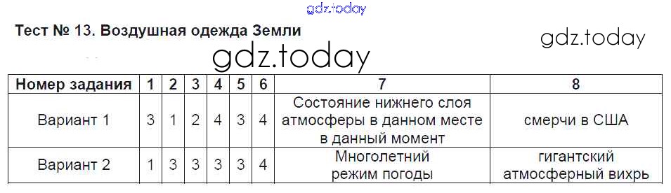 На страницах сайта gdz.today вы найдете учебный и вспомогательный материал, направленный на улучшения знаний школьной программы. ГДЗ - онлайн мир знаний Решение к тестам 13 Контрольно-измерительным материалам (КИМ) по Географии для 5 класса Жижина ВАКО 2018
