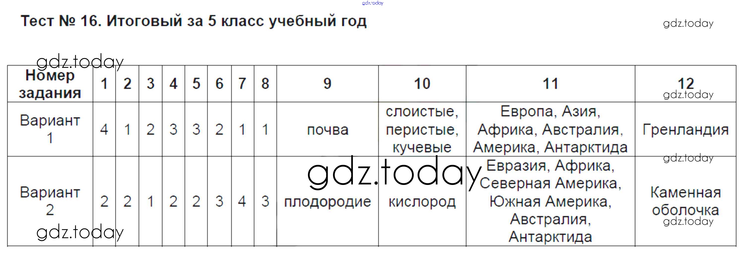 На страницах сайта gdz.today вы найдете учебный и вспомогательный материал, направленный на улучшения знаний школьной программы. ГДЗ - онлайн мир знаний Решение к тестам 16 Контрольно-измерительным материалам (КИМ) по Географии для 5 класса Жижина ВАКО 2018