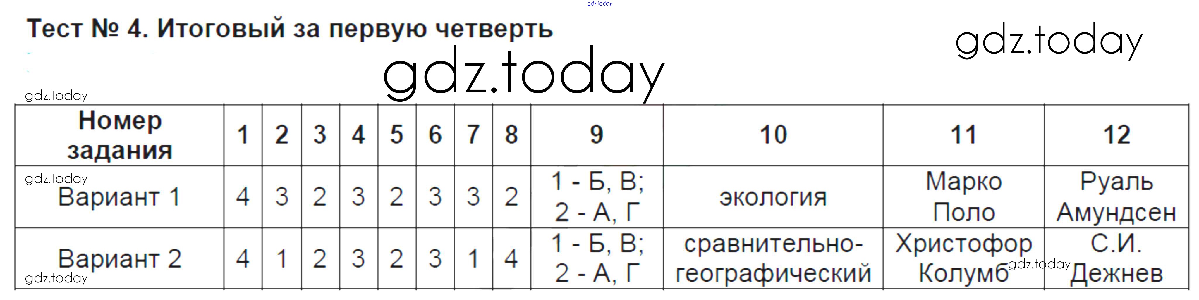 На страницах сайта gdz.today вы найдете учебный и вспомогательный материал, направленный на улучшения знаний школьной программы. ГДЗ - онлайн мир знаний Решение к тестам 4 Контрольно-измерительным материалам (КИМ) по Географии для 5 класса Жижина ВАКО 2018