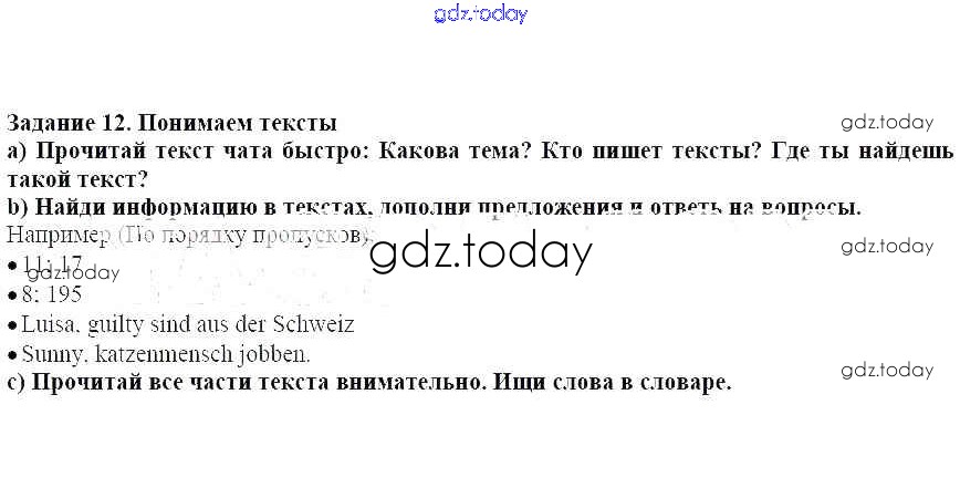 На страницах сайта gdz.today вы найдете учебный и вспомогательный материал, направленный на улучшения знаний школьной программы. ГДЗ - онлайн мир знаний Решение к главе 7 12 Учебнику по Немецкому языку для 5 класса Аверин, Джин Просвещение Horizonte 2016