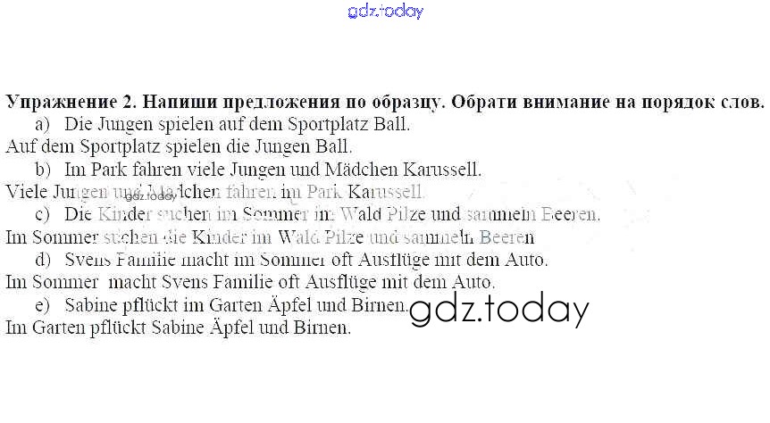 На страницах сайта gdz.today вы найдете учебный и вспомогательный материал, направленный на улучшения знаний школьной программы. ГДЗ - онлайн мир знаний Что дети обычно делают на летних каникулах Здравствуй, 5 класс! С чем мы пришли из 4-го класса. Небольшой курс повторения 2 Рабочей тетради по Немецкому языку для 5 класса Бим Просвещение 2005