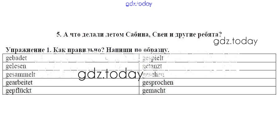 На страницах сайта gdz.today вы найдете учебный и вспомогательный материал, направленный на улучшения знаний школьной программы. ГДЗ - онлайн мир знаний А что делали летом Сабина, Свен и другие ребята Здравствуй, 5 класс! С чем мы пришли из 4-го класса. Небольшой курс повторения 1 Рабочей тетради по Немецкому языку для 5 класса Бим Просвещение 2005