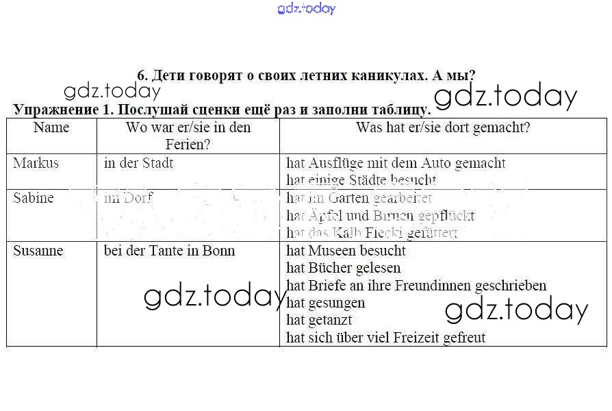 На страницах сайта gdz.today вы найдете учебный и вспомогательный материал, направленный на улучшения знаний школьной программы. ГДЗ - онлайн мир знаний Дети говорят о своих летних каникулах. А мы Здравствуй, 5 класс! С чем мы пришли из 4-го класса. Небольшой курс повторения 1 Рабочей тетради по Немецкому языку для 5 класса Бим Просвещение 2005