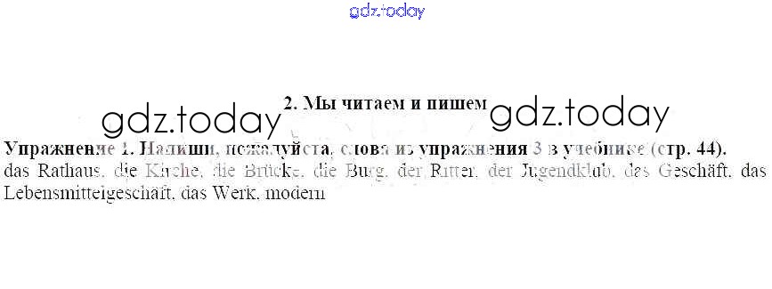 На страницах сайта gdz.today вы найдете учебный и вспомогательный материал, направленный на улучшения знаний школьной программы. ГДЗ - онлайн мир знаний Мы читаем и пишем Решение к главе I. Старый немецкий город. Что в нём 1 Рабочей тетради по Немецкому языку для 5 класса Бим Просвещение 2005