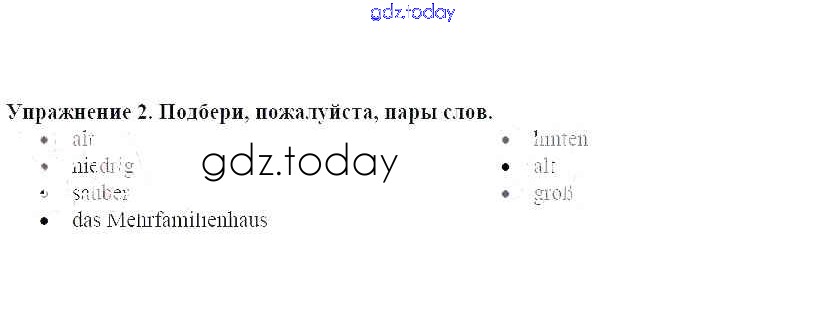 На страницах сайта gdz.today вы найдете учебный и вспомогательный материал, направленный на улучшения знаний школьной программы. ГДЗ - онлайн мир знаний Давайте говорить! Решение к главе IV. Где и как тут живут люди 2 Рабочей тетради по Немецкому языку для 5 класса Бим Просвещение 2005