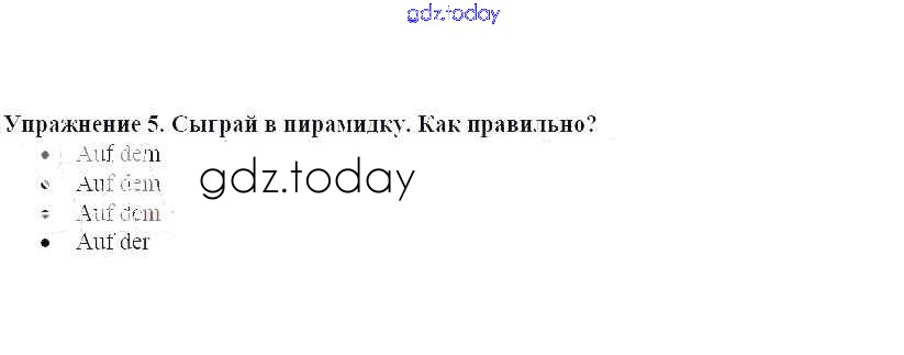 На страницах сайта gdz.today вы найдете учебный и вспомогательный материал, направленный на улучшения знаний школьной программы. ГДЗ - онлайн мир знаний Давайте говорить! Решение к главе V. У Габи дома. Что мы тут видим 5 Рабочей тетради по Немецкому языку для 5 класса Бим Просвещение 2005
