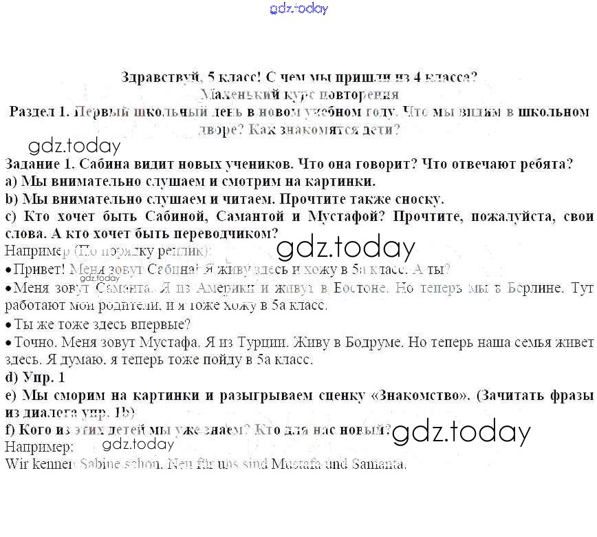 На страницах сайта gdz.today вы найдете учебный и вспомогательный материал, направленный на улучшения знаний школьной программы. ГДЗ - онлайн мир знаний Раздел 1 Здравствуй, 5 класс 1 Учебнику по Немецкому языку для 5 класса Бим Просвещение 2019