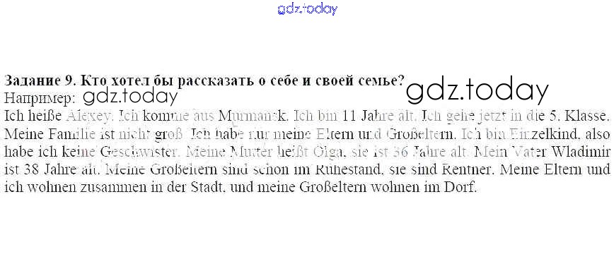 На страницах сайта gdz.today вы найдете учебный и вспомогательный материал, направленный на улучшения знаний школьной программы. ГДЗ - онлайн мир знаний Раздел 1 Здравствуй, 5 класс 9 Учебнику по Немецкому языку для 5 класса Бим Просвещение 2019