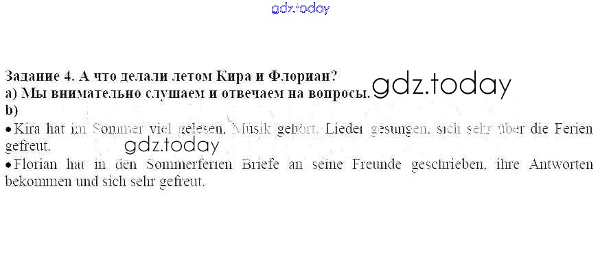 На страницах сайта gdz.today вы найдете учебный и вспомогательный материал, направленный на улучшения знаний школьной программы. ГДЗ - онлайн мир знаний Раздел 5 Здравствуй, 5 класс 4 Учебнику по Немецкому языку для 5 класса Бим Просвещение 2019