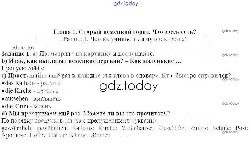 На страницах сайта gdz.today вы найдете учебный и вспомогательный материал, направленный на улучшения знаний школьной программы. ГДЗ - онлайн мир знаний Раздел 1 Решение к главе 1 1 Учебнику по Немецкому языку для 5 класса Бим Просвещение 2019