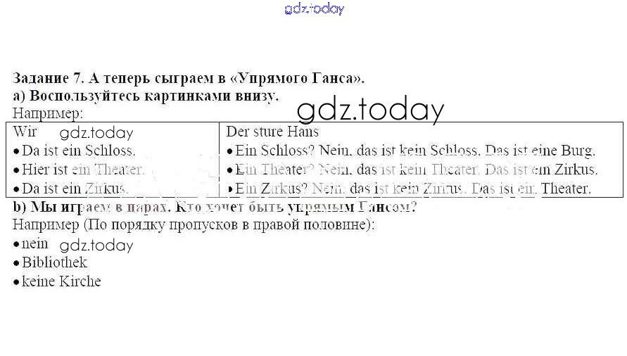 На страницах сайта gdz.today вы найдете учебный и вспомогательный материал, направленный на улучшения знаний школьной программы. ГДЗ - онлайн мир знаний Раздел 1 Решение к главе 1 7 Учебнику по Немецкому языку для 5 класса Бим Просвещение 2019