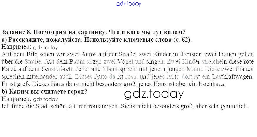 На страницах сайта gdz.today вы найдете учебный и вспомогательный материал, направленный на улучшения знаний школьной программы. ГДЗ - онлайн мир знаний Раздел 1 Решение к главе 2 8 Учебнику по Немецкому языку для 5 класса Бим Просвещение 2019