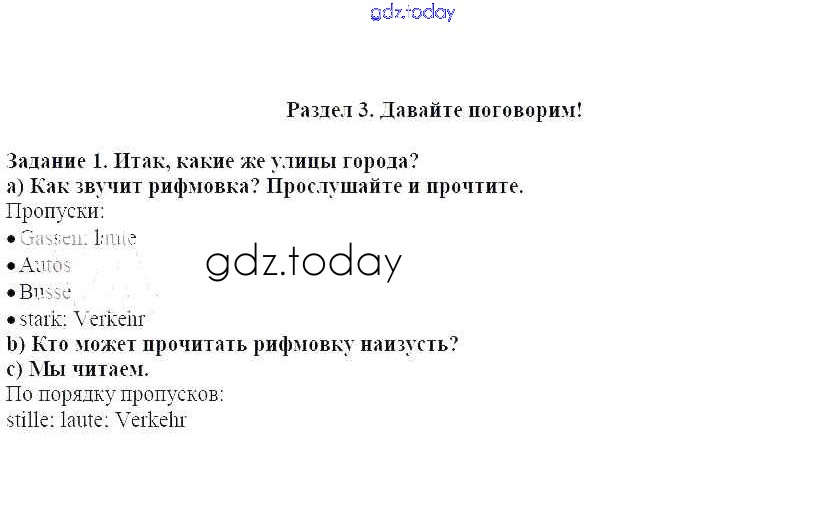 На страницах сайта gdz.today вы найдете учебный и вспомогательный материал, направленный на улучшения знаний школьной программы. ГДЗ - онлайн мир знаний Раздел 3 Решение к главе 3 1 Учебнику по Немецкому языку для 5 класса Бим Просвещение 2019