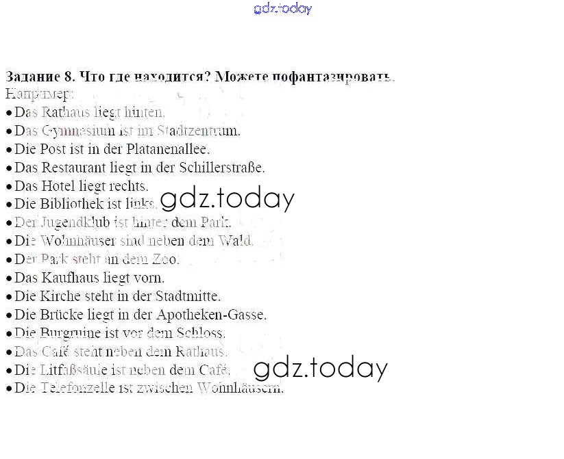 На страницах сайта gdz.today вы найдете учебный и вспомогательный материал, направленный на улучшения знаний школьной программы. ГДЗ - онлайн мир знаний Раздел 1 Решение к главе 4 8 Учебнику по Немецкому языку для 5 класса Бим Просвещение 2019