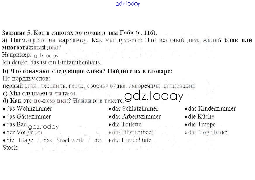 На страницах сайта gdz.today вы найдете учебный и вспомогательный материал, направленный на улучшения знаний школьной программы. ГДЗ - онлайн мир знаний Раздел 1 Решение к главе 5 5 Учебнику по Немецкому языку для 5 класса Бим Просвещение 2019