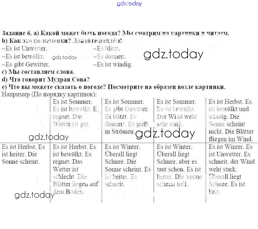 На страницах сайта gdz.today вы найдете учебный и вспомогательный материал, направленный на улучшения знаний школьной программы. ГДЗ - онлайн мир знаний Раздел 1 Решение к главе 6 6 Учебнику по Немецкому языку для 5 класса Бим Просвещение 2019
