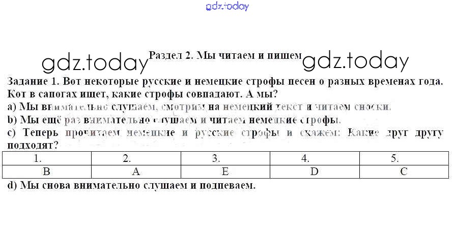 На страницах сайта gdz.today вы найдете учебный и вспомогательный материал, направленный на улучшения знаний школьной программы. ГДЗ - онлайн мир знаний Раздел 2 Решение к главе 6 1 Учебнику по Немецкому языку для 5 класса Бим Просвещение 2019