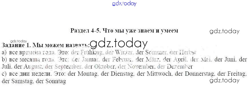 На страницах сайта gdz.today вы найдете учебный и вспомогательный материал, направленный на улучшения знаний школьной программы. ГДЗ - онлайн мир знаний Раздел 4-5 Решение к главе 6 1 Учебнику по Немецкому языку для 5 класса Бим Просвещение 2019