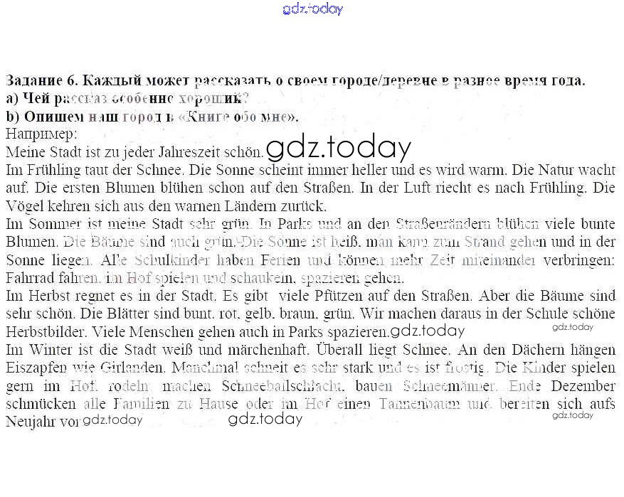 На страницах сайта gdz.today вы найдете учебный и вспомогательный материал, направленный на улучшения знаний школьной программы. ГДЗ - онлайн мир знаний Раздел 4-5 Решение к главе 6 6 Учебнику по Немецкому языку для 5 класса Бим Просвещение 2019