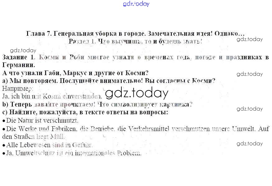 На страницах сайта gdz.today вы найдете учебный и вспомогательный материал, направленный на улучшения знаний школьной программы. ГДЗ - онлайн мир знаний Раздел 1 Решение к главе 7 1 Учебнику по Немецкому языку для 5 класса Бим Просвещение 2019