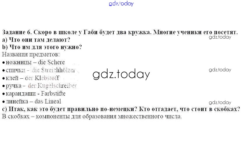 На страницах сайта gdz.today вы найдете учебный и вспомогательный материал, направленный на улучшения знаний школьной программы. ГДЗ - онлайн мир знаний Раздел 2 Решение к главе 7 6 Учебнику по Немецкому языку для 5 класса Бим Просвещение 2019