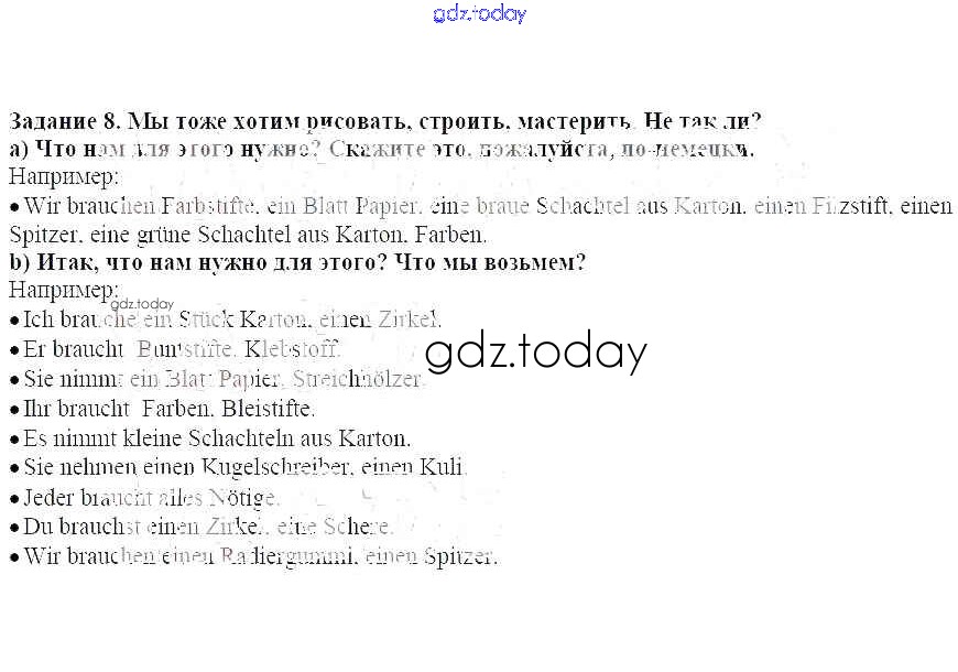 На страницах сайта gdz.today вы найдете учебный и вспомогательный материал, направленный на улучшения знаний школьной программы. ГДЗ - онлайн мир знаний Раздел 2 Решение к главе 7 8 Учебнику по Немецкому языку для 5 класса Бим Просвещение 2019