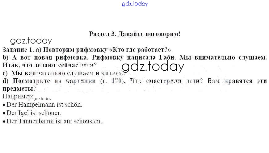 На страницах сайта gdz.today вы найдете учебный и вспомогательный материал, направленный на улучшения знаний школьной программы. ГДЗ - онлайн мир знаний Раздел 3 Решение к главе 7 1 Учебнику по Немецкому языку для 5 класса Бим Просвещение 2019