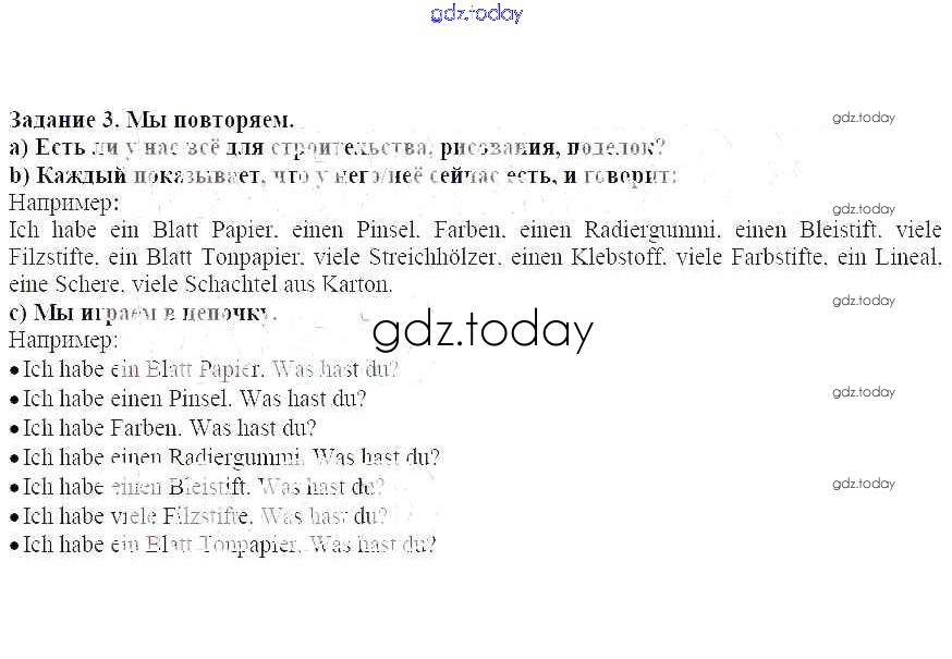 На страницах сайта gdz.today вы найдете учебный и вспомогательный материал, направленный на улучшения знаний школьной программы. ГДЗ - онлайн мир знаний Раздел 1 Решение к главе 8 3 Учебнику по Немецкому языку для 5 класса Бим Просвещение 2019