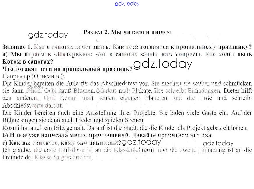 На страницах сайта gdz.today вы найдете учебный и вспомогательный материал, направленный на улучшения знаний школьной программы. ГДЗ - онлайн мир знаний Раздел 2 Решение к главе 9 1 Учебнику по Немецкому языку для 5 класса Бим Просвещение 2019