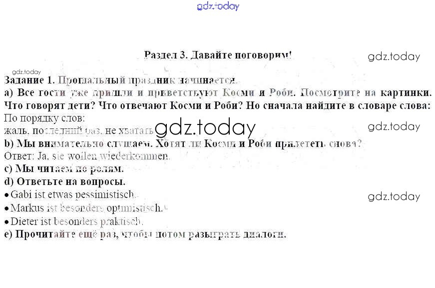 На страницах сайта gdz.today вы найдете учебный и вспомогательный материал, направленный на улучшения знаний школьной программы. ГДЗ - онлайн мир знаний Раздел 3 Решение к главе 9 1 Учебнику по Немецкому языку для 5 класса Бим Просвещение 2019