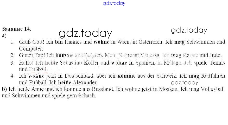 На страницах сайта gdz.today вы найдете учебный и вспомогательный материал, направленный на улучшения знаний школьной программы. ГДЗ - онлайн мир знаний Решение к главе 1 14 Рабочей тетради по Немецкому языку для 5 класса Аверин, Рорман Просвещение Horizonte 2020