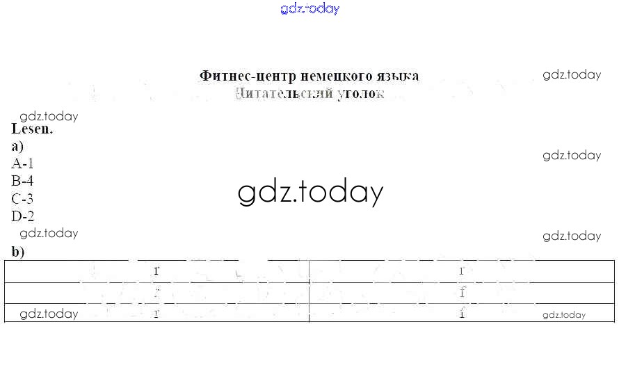 На страницах сайта gdz.today вы найдете учебный и вспомогательный материал, направленный на улучшения знаний школьной программы. ГДЗ - онлайн мир знаний Фитнес-центр немецкого языка Решение к главе 5 1 Рабочей тетради по Немецкому языку для 5 класса Аверин, Рорман Просвещение Horizonte 2020