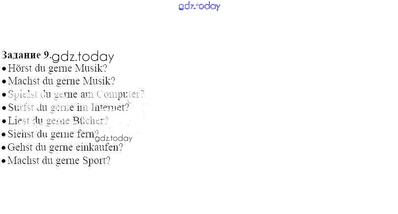 На страницах сайта gdz.today вы найдете учебный и вспомогательный материал, направленный на улучшения знаний школьной программы. ГДЗ - онлайн мир знаний Решение к главе 5 9 Рабочей тетради по Немецкому языку для 5 класса Аверин, Рорман Просвещение Horizonte 2020