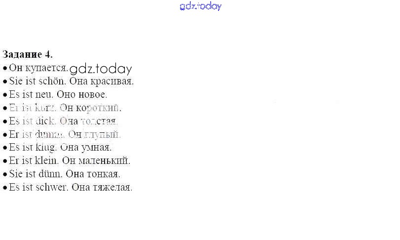 На страницах сайта gdz.today вы найдете учебный и вспомогательный материал, направленный на улучшения знаний школьной программы. ГДЗ - онлайн мир знаний Решение к уроку 5 4 Рабочей тетради по Немецкому языку для 5 класса Радченко, Хебелер Дрофа Alles Klar! 2015