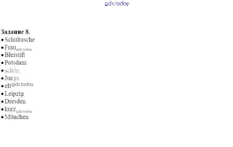 На страницах сайта gdz.today вы найдете учебный и вспомогательный материал, направленный на улучшения знаний школьной программы. ГДЗ - онлайн мир знаний Решение к уроку 5 8 Рабочей тетради по Немецкому языку для 5 класса Радченко, Хебелер Дрофа Alles Klar! 2015