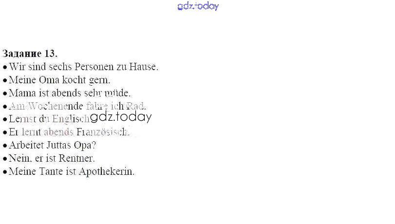 На страницах сайта gdz.today вы найдете учебный и вспомогательный материал, направленный на улучшения знаний школьной программы. ГДЗ - онлайн мир знаний Решение к уроку 7 13 Рабочей тетради по Немецкому языку для 5 класса Радченко, Хебелер Дрофа Alles Klar! 2015