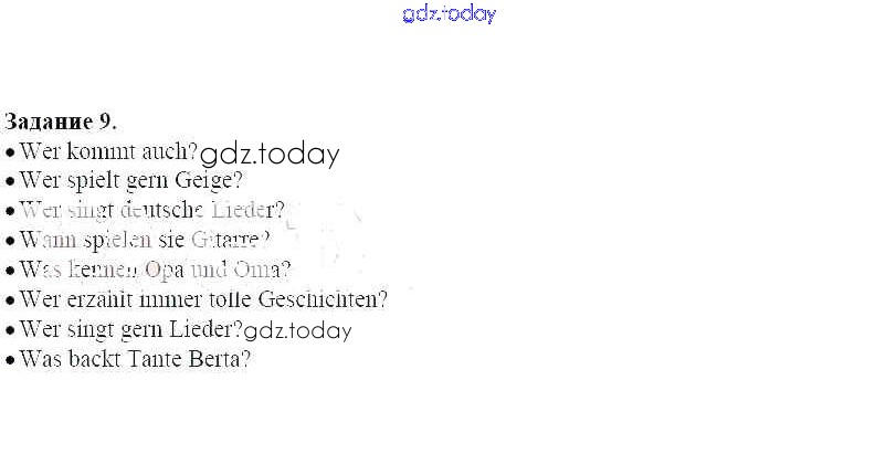 На страницах сайта gdz.today вы найдете учебный и вспомогательный материал, направленный на улучшения знаний школьной программы. ГДЗ - онлайн мир знаний Решение к уроку 9 9 Рабочей тетради по Немецкому языку для 5 класса Радченко, Хебелер Дрофа Alles Klar! 2015