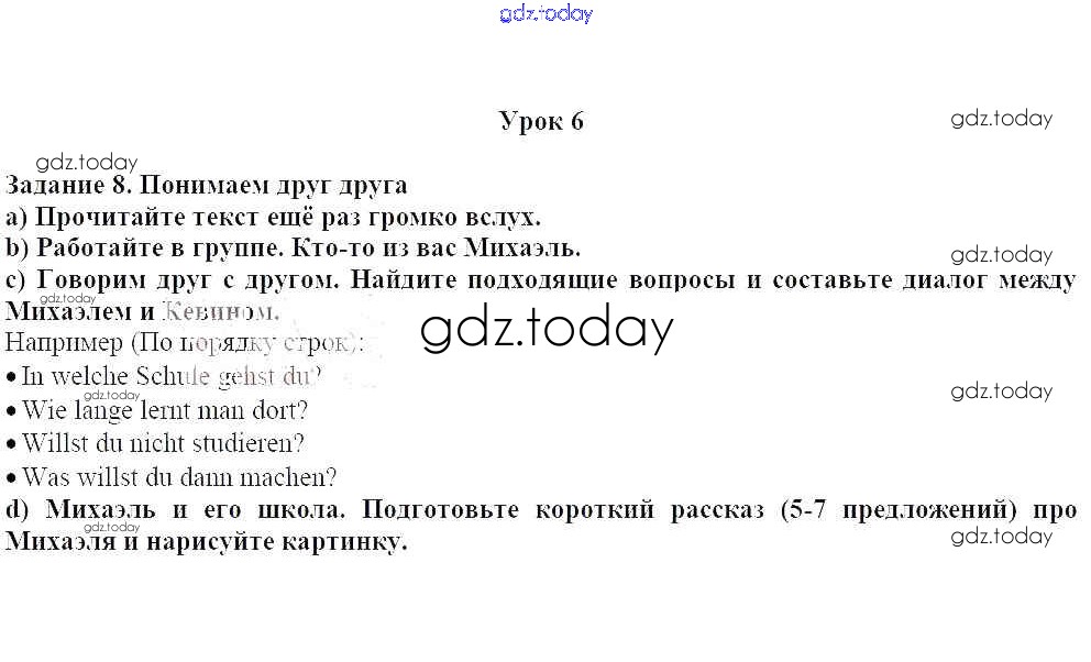 На страницах сайта gdz.today вы найдете учебный и вспомогательный материал, направленный на улучшения знаний школьной программы. ГДЗ - онлайн мир знаний Уроки 1-12 Решение к главе 2. Школа доставляет удовольствие 8 Учебнику по Немецкому языку для 5 класса Яковлева Углубленный уровень Просвещение Wunderkinder Plus 2020