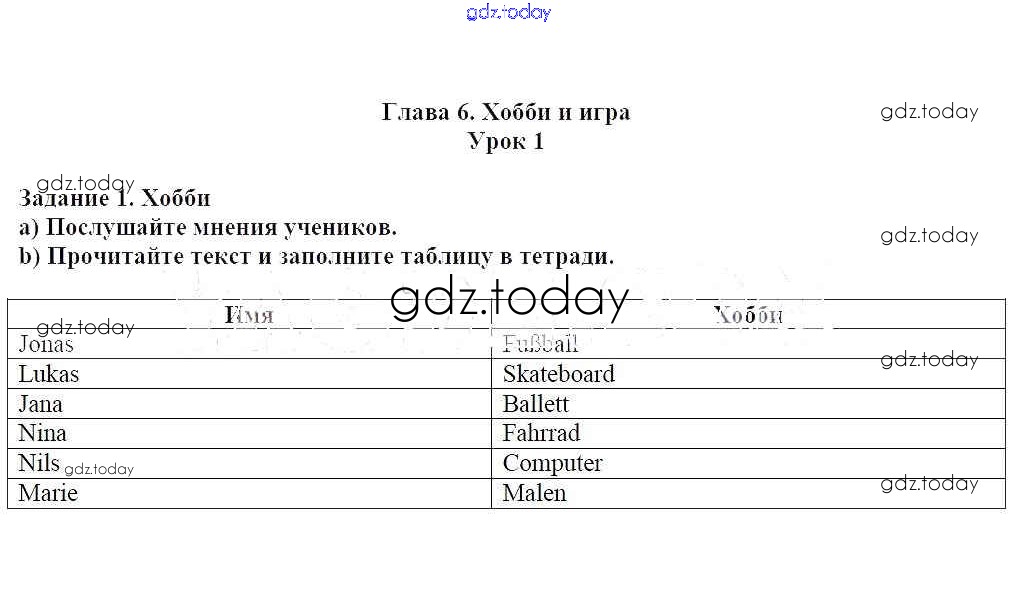 На страницах сайта gdz.today вы найдете учебный и вспомогательный материал, направленный на улучшения знаний школьной программы. ГДЗ - онлайн мир знаний Уроки 1-13 Решение к главе 6. Хобби и игра 1 Учебнику по Немецкому языку для 5 класса Яковлева Углубленный уровень Просвещение Wunderkinder Plus 2020
