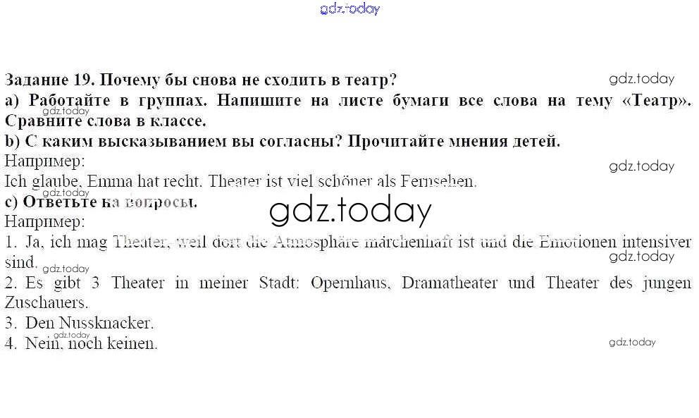 На страницах сайта gdz.today вы найдете учебный и вспомогательный материал, направленный на улучшения знаний школьной программы. ГДЗ - онлайн мир знаний Уроки 1-13 Решение к главе 6. Хобби и игра 19 Учебнику по Немецкому языку для 5 класса Яковлева Углубленный уровень Просвещение Wunderkinder Plus 2020