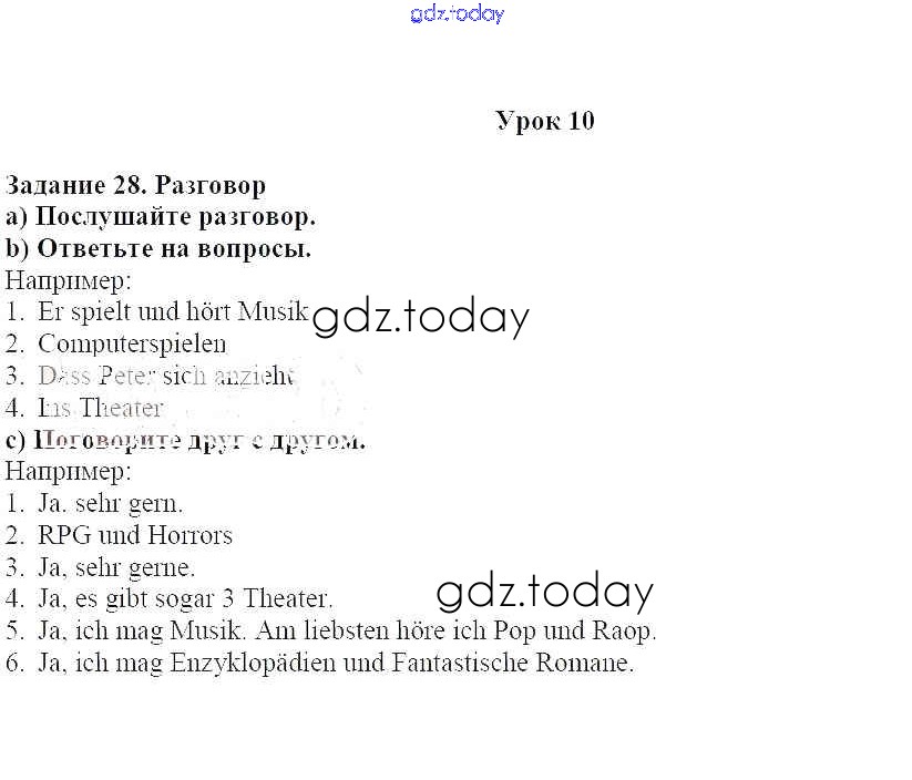 На страницах сайта gdz.today вы найдете учебный и вспомогательный материал, направленный на улучшения знаний школьной программы. ГДЗ - онлайн мир знаний Уроки 1-13 Решение к главе 6. Хобби и игра 28 Учебнику по Немецкому языку для 5 класса Яковлева Углубленный уровень Просвещение Wunderkinder Plus 2020