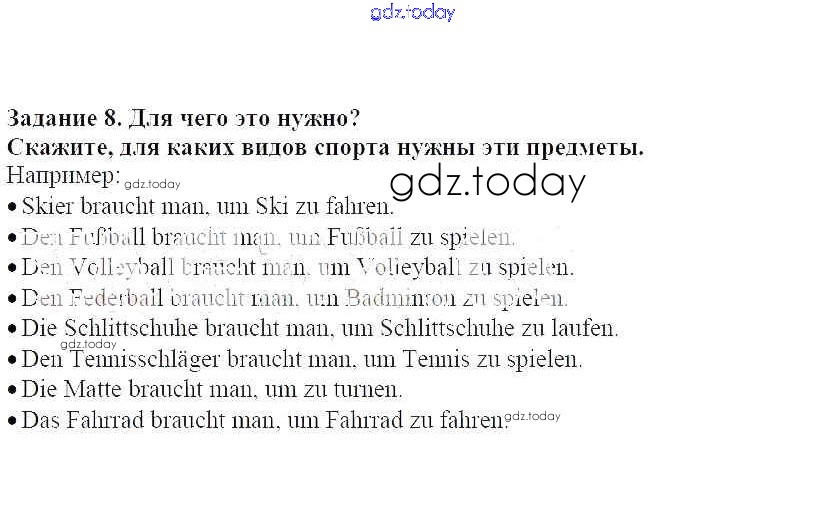 На страницах сайта gdz.today вы найдете учебный и вспомогательный материал, направленный на улучшения знаний школьной программы. ГДЗ - онлайн мир знаний Уроки 1-13 Решение к главе 7. Спорт - это круто! 8 Учебнику по Немецкому языку для 5 класса Яковлева Углубленный уровень Просвещение Wunderkinder Plus 2020