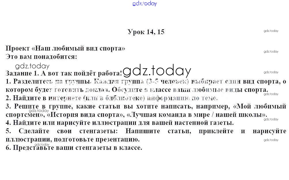 На страницах сайта gdz.today вы найдете учебный и вспомогательный материал, направленный на улучшения знаний школьной программы. ГДЗ - онлайн мир знаний Уроки 14-15 Решение к главе 7. Спорт - это круто! 1 Учебнику по Немецкому языку для 5 класса Яковлева Углубленный уровень Просвещение Wunderkinder Plus 2020