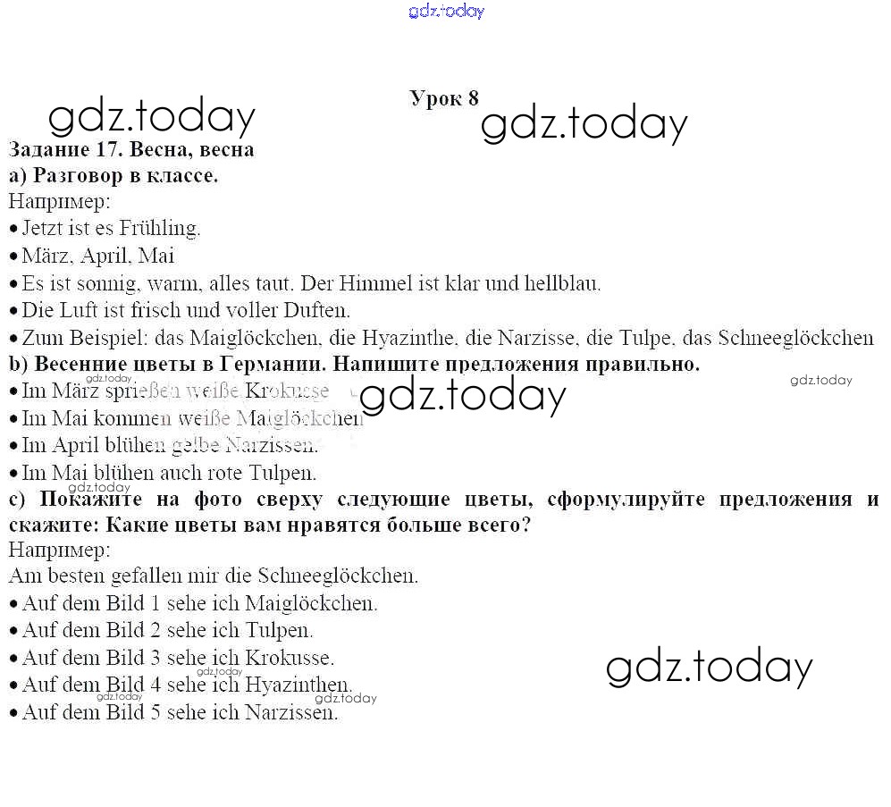 На страницах сайта gdz.today вы найдете учебный и вспомогательный материал, направленный на улучшения знаний школьной программы. ГДЗ - онлайн мир знаний Уроки 1-13 Решение к главе 8. Нашей планете нужна помощь 17 Учебнику по Немецкому языку для 5 класса Яковлева Углубленный уровень Просвещение Wunderkinder Plus 2020